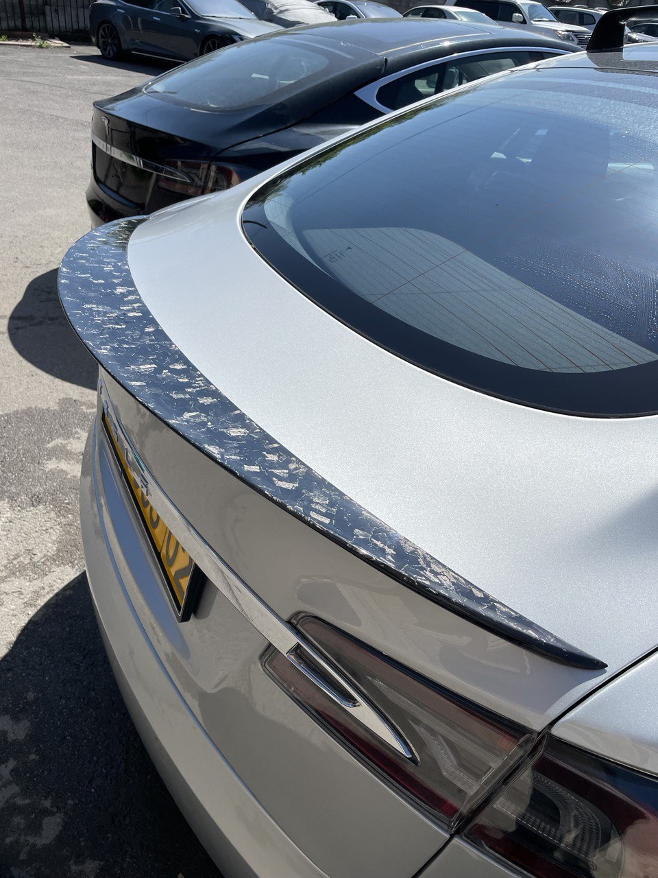 Безумно красивый спойлер дополнит ваш автомобиль. Он больше обычного лип спойлера от Тесла. Но не такой огромный как Duck Tale.
